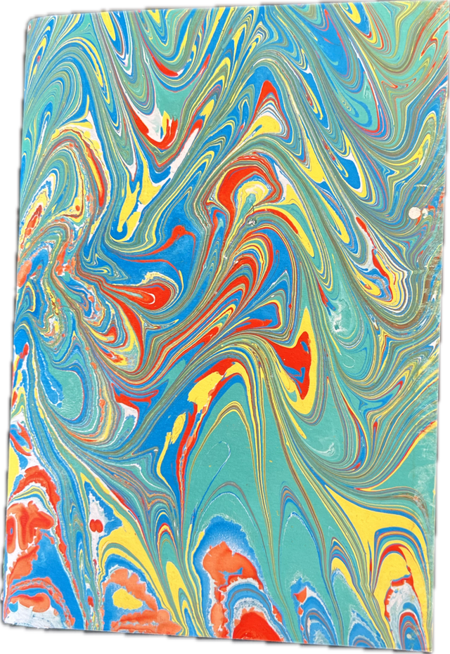 Carnet souple A6 (10 x14.5 cm) de 64 pages ( papier blanc 90 gr.) couleur dominante marbré vert orange bleu jaune. (frais de port compris lettre verte avec suivi) Attention cet article est unique n'en commander qu'un seul