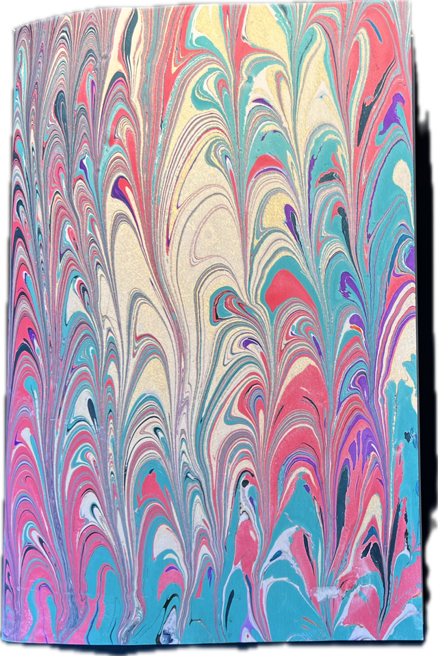 Carnet souple A5 (14 x 20.6 cm) de 64 pages ( papier blanc 90 gr.) couleur dominante marbré Rose, vert, violet, jaune brillant. (frais de port compris lettre verte avec suivi) Attention, cet article est unique - n'en commander qu'un seul